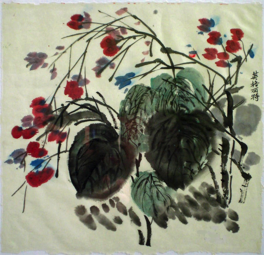 Chinese Begonias, 50 x 40 cm, Tusche auf Bambus-Papier