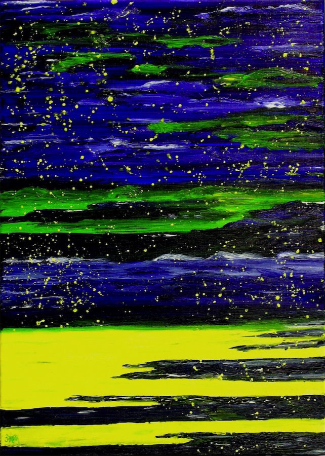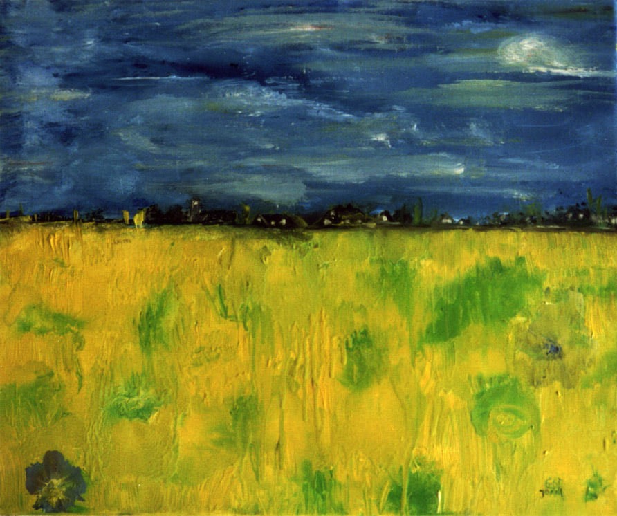 Rapsfeld unter dem Sternenzelt, 70 x 50 cm, Öl auf Leinwand