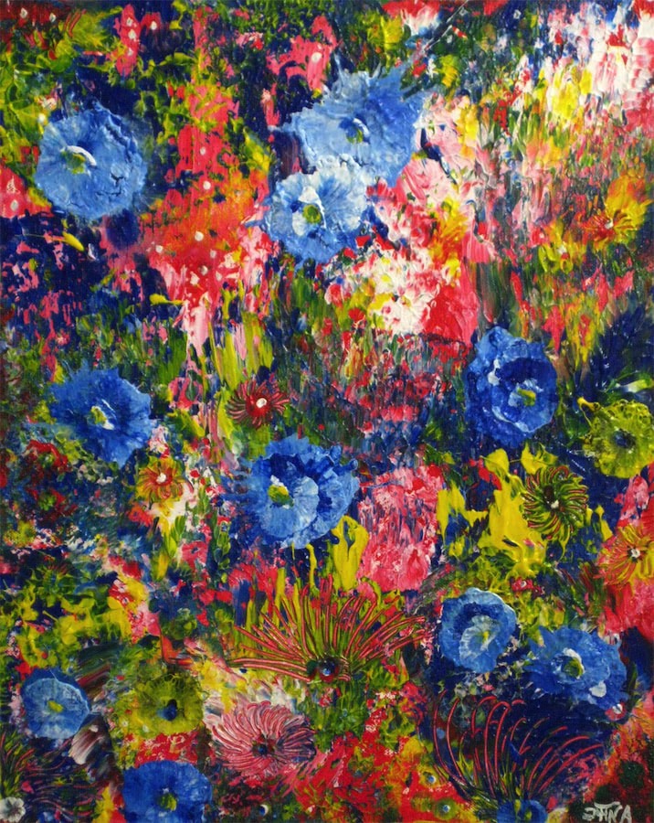 Im Frühlingsgarten, 50x40 cm, Mischtechnik auf Lwd.