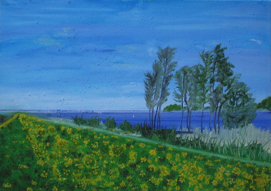 Raps am Meer, 60 x 80 cm, Öl auf Leinwand