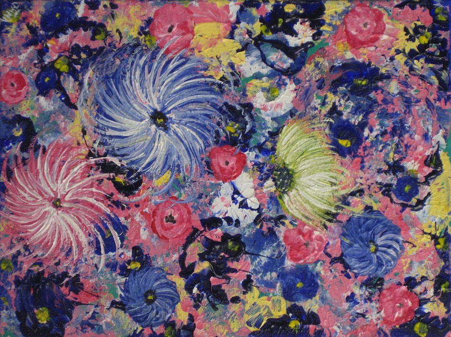 Bunter Frühlingsstrauss, 40 x 50 cm, Öl auf Holz -sold